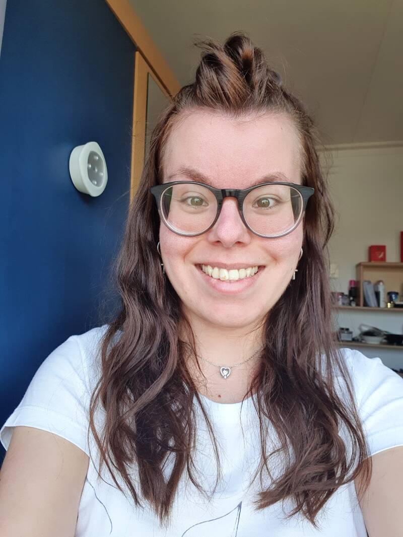 To apply this product on my face every day, I use a beauty blender. Due to the light in my room, it's not clearly visible in the photo, but it's a very affordable beauty blender. I got this from the Kruidvat. It's a combination between lilac and green. When using a beauty blender, make sure it is well moist. Otherwise, the finish may be disappointing and the sponge may not function properly. Most try to avoid beauty blenders because they generally absorb a lot.