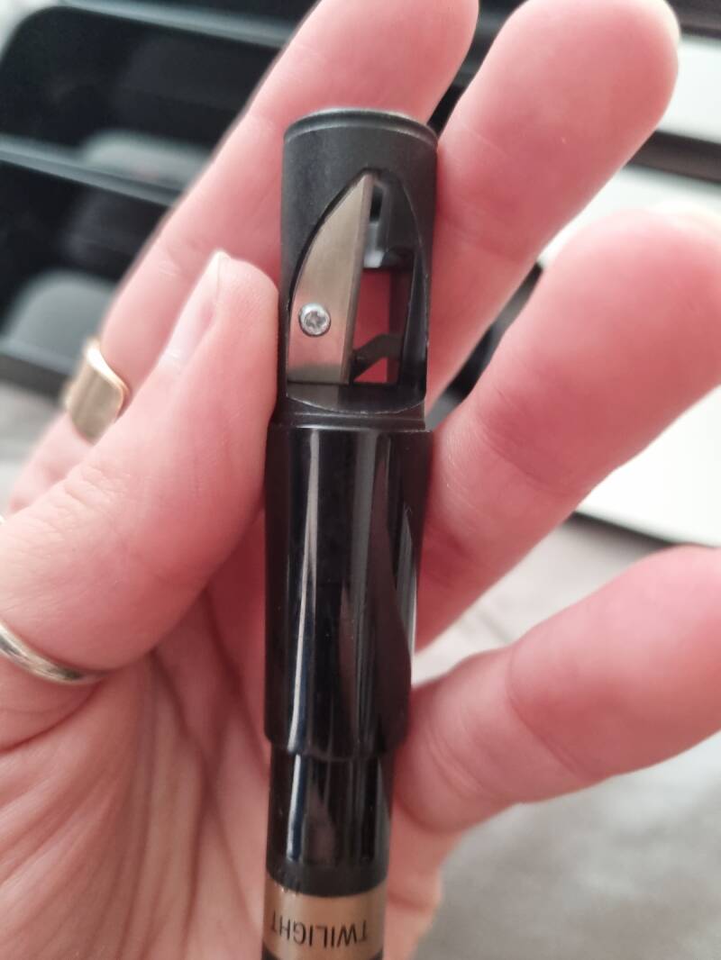 Did I say a sharpener? Yes that's right! With every eyeshadow pencil you get an original NUDESTIX sharpener with a cap. You can even attach it to the pencil! Handy, huh? So you have a complete set for a price tag of (easily rounding to whole numbers) €24,-. It's pricey, but for a complete case and sharpener that you'd have to buy separately if it breaks, it's a great deal!